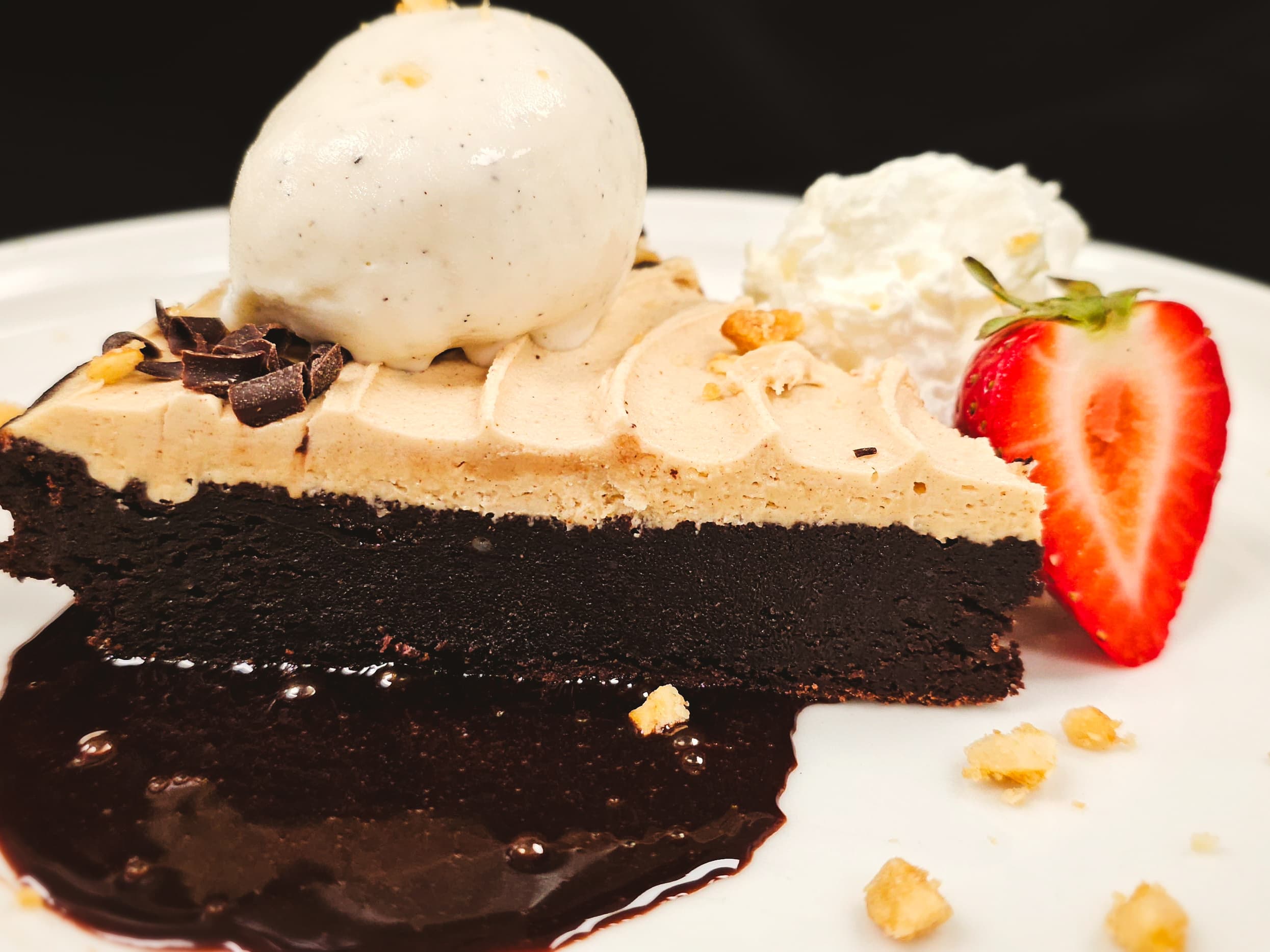 [14]Layers of rich chocolate cake, chocolate ganache, salted caramel gelato